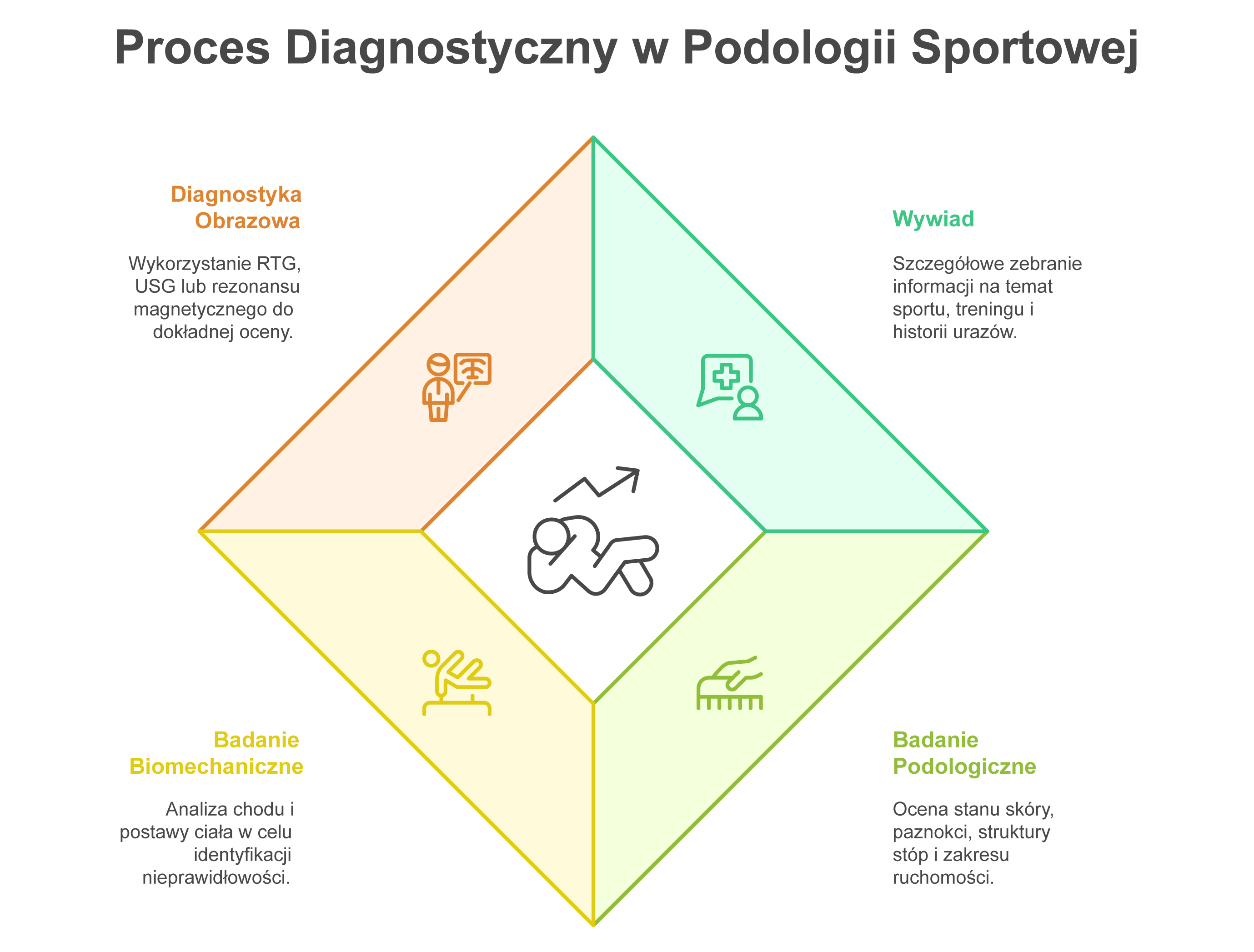 Badanie biomechaniczne: Analiza chodu i postawy ciała, w celu identyfikacji nieprawidłowości, które mogą przyczyniać się do problemów stóp. Może obejmować ocenę na platformie podobarometrycznej, która mierzy rozkład nacisku na podeszwowej stronie stopy.